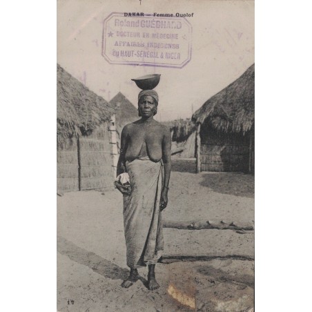 FEMME - SEINS NUS - FEMME OUOLOF - SENEGAL - DAKAR - CARTE AVEC CACHET DOCTEUR EN MEDECINE AFFAIRES INDIGENES..