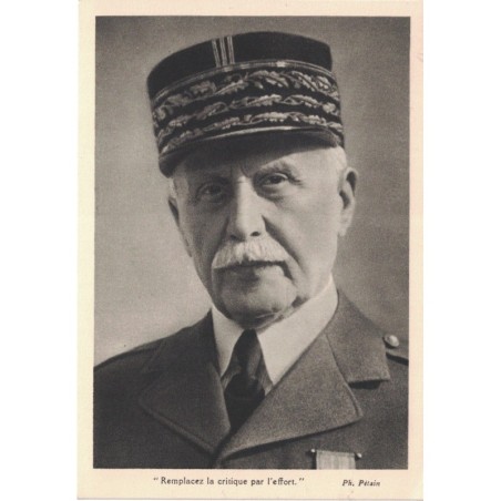 PETAIN PHILIPPE - MARECHAL DE FRANCE - CHEF DE L'ETAT FRANCAIS - " REMPLACEZ LA CRITIQUE PAR L'EFFORT" - CARTE NEUVE.
