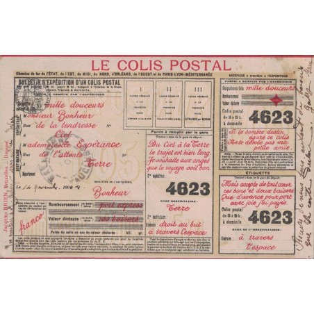 • LE COLIS POSTAL - CARTE ILLUTREE D'UN FORMULAIRE D'EXPEDITION D'UN COLIS POSTAL - CIRCULEE MAIS SANS TIMBRE.