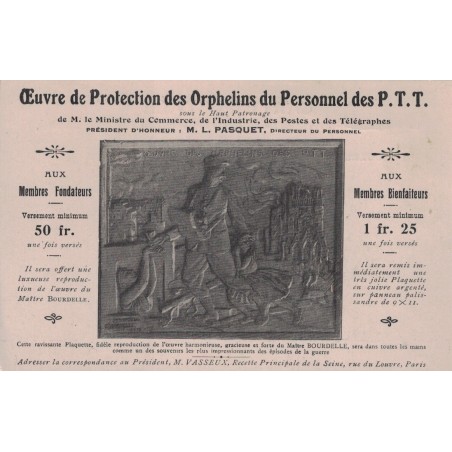 • OEUVRE DE PROTECTION DES ORPHELINS DU PERSONNEL DES P.T.T. - FACTEUR - CARTE NON CIRCULEE.