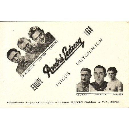 • EQUIPE ANDRE LEDUCQ - ARCHAMBAUD-LEDUCQ-DEBENNE - 1938 - PUB PNEUS HUTCHINSON - CARTE NON CIRCULEE.