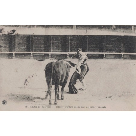 • COURSE DE TAUREAUX - TOREADOR PROFILANT AU MOMENT DE PORTER L'ESTOCADE - CARTE DE NIMES DATEE DE 1913.