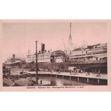 • MESSAGERIES MARITIMES - SAIGON - BATEAUX A QUAI - CARTE NEUVE.