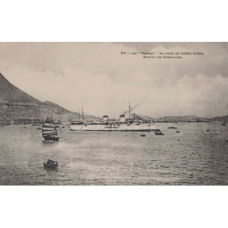 INDOCHINE - ESCADRE DE L'INDOCHINE - LE PASCAL EN RADE DE HONGKONG - RETOUR DE CHEMULPO - BATAILLE DE CHEMULPO GUERRE RUSSO-JAPONAISE - NON CIRCULEE.